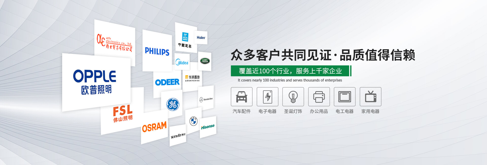 產品廣泛應用于燈飾、家電、OA設備、IT、通訊、電子、電工電器、建材、電線電纜等多種行業